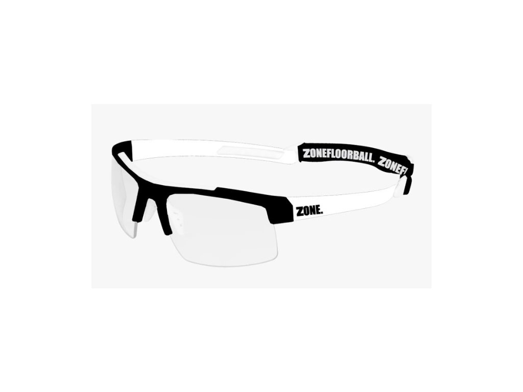 Florbalové sportovní brýle Zone Eyewear Protector Intro Black/White jsou určeny k ochraně očí před úrazem. Mají nerozbitná a nemlžící se skla, nosní opěrky a nastavitelný pružný zadní pásek. Skla nejde vyměnit za dioptrická. Brýle jsou schválené a doporučované Mezinárodní florbalovou federací (IFF). Součástí je ochranné pouzdro s karabinou.